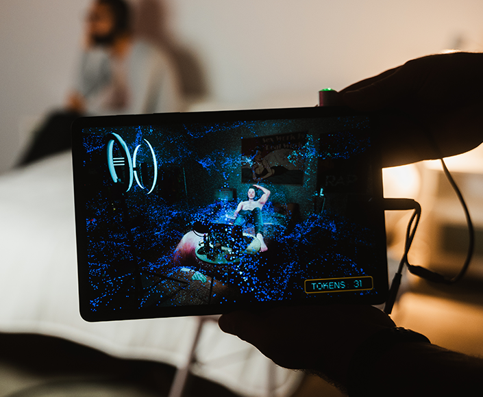 "Show Me Yours" is an installation from the exhibition "Sex, Desires, Data" (Numix Award 2024) by Studio PHI in July 2023, which explores the relationship between digital technology and sexuality. I contributed to several installations, particularly "Show Me Yours," an augmented reality work addressing the relationships of sex workers via the internet.
